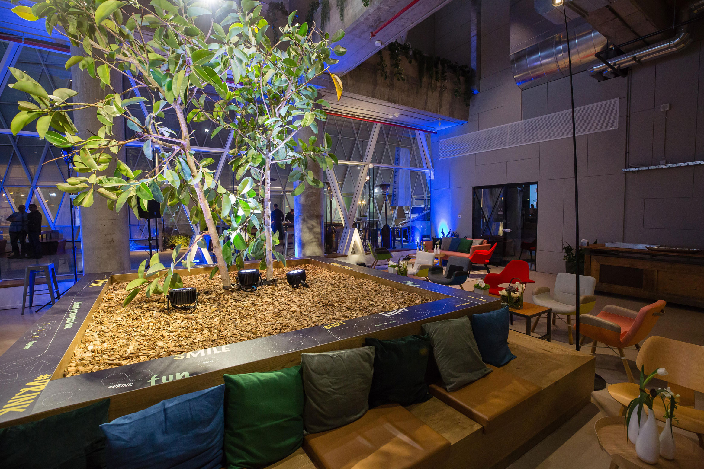 The General Motors Israel event celebrated the opening of their new branch in Tel Aviv. The design challenge was to brand the evening using the company’s logo in a way that would blend with the venue’s atmosphere and create a warm, intimate, and friendly celebration shared by employees and management alike.
